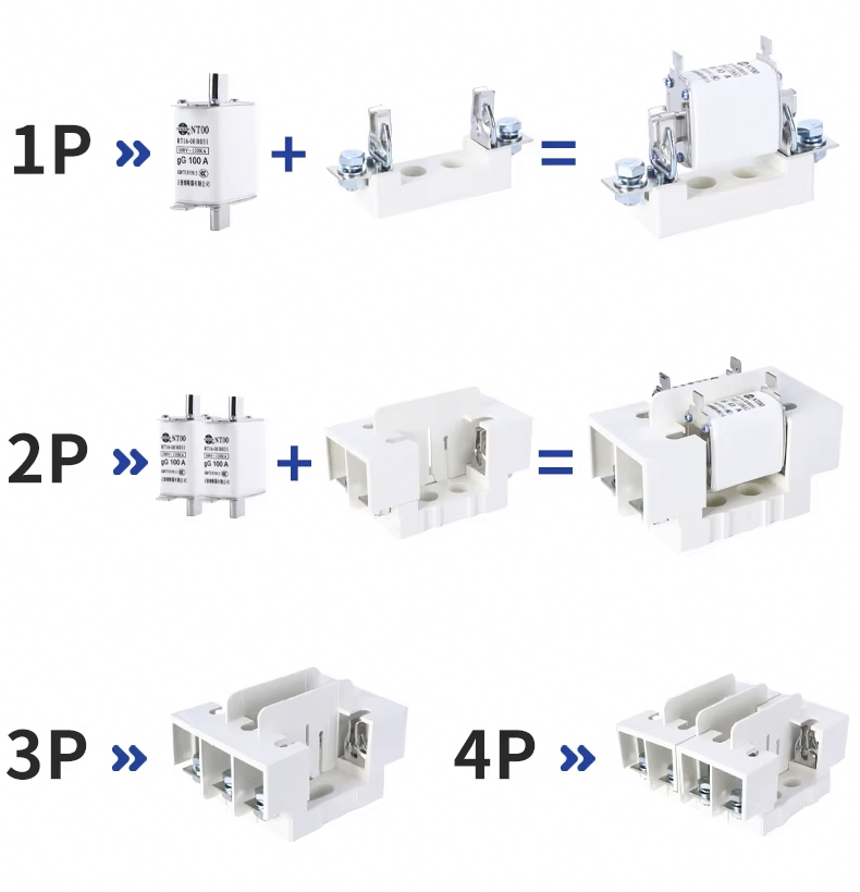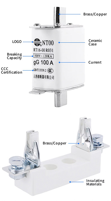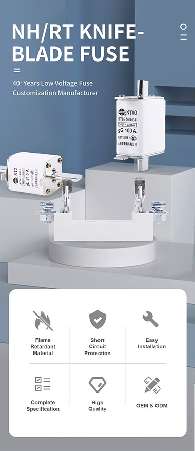 Med en høj brydekapacitet tilbyder den tilpassede lavspændings NT00 AC 160A 500/690V højbrydende keramiske bladsikringsholder overlegen beskyttelse mod overbelastning og kortslutninger ved spændinger op til 690V.