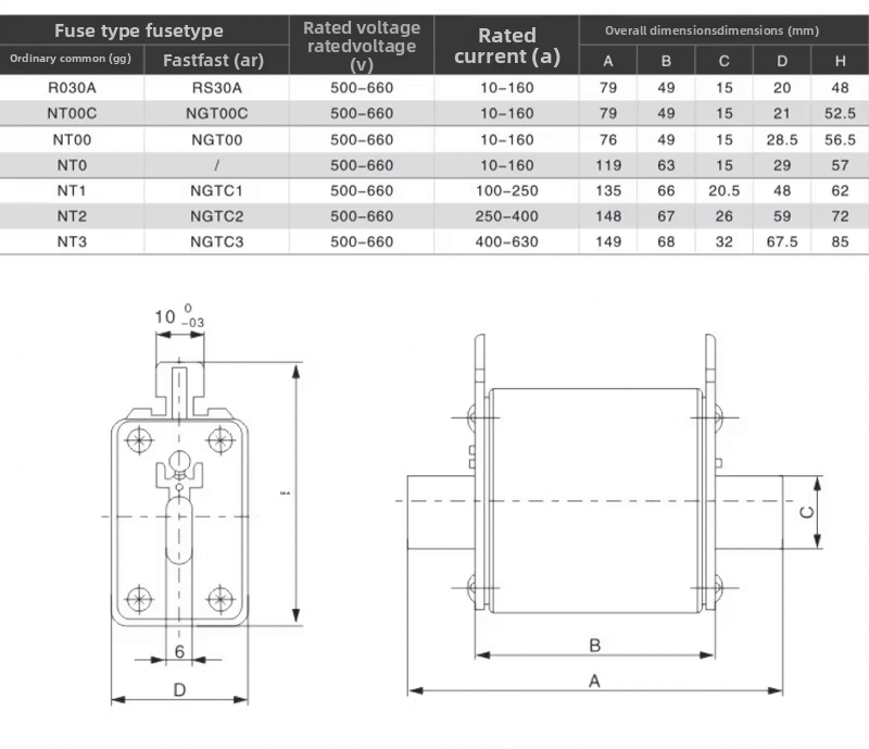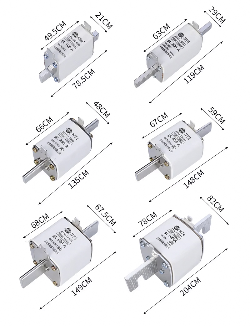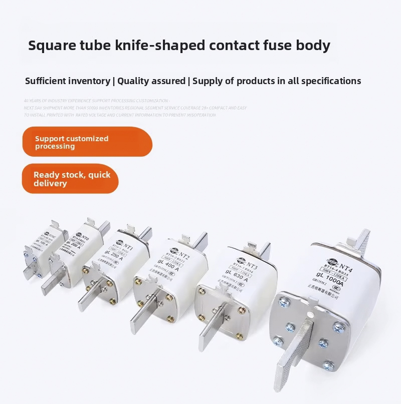NT/NH-seriens firkantede keramiske sikringer bruges almindeligvis i industrielt elektrisk udstyr, strømsystemer og elektronisk udstyr for at beskytte kredsløb mod overbelastning og kortslutninger.
